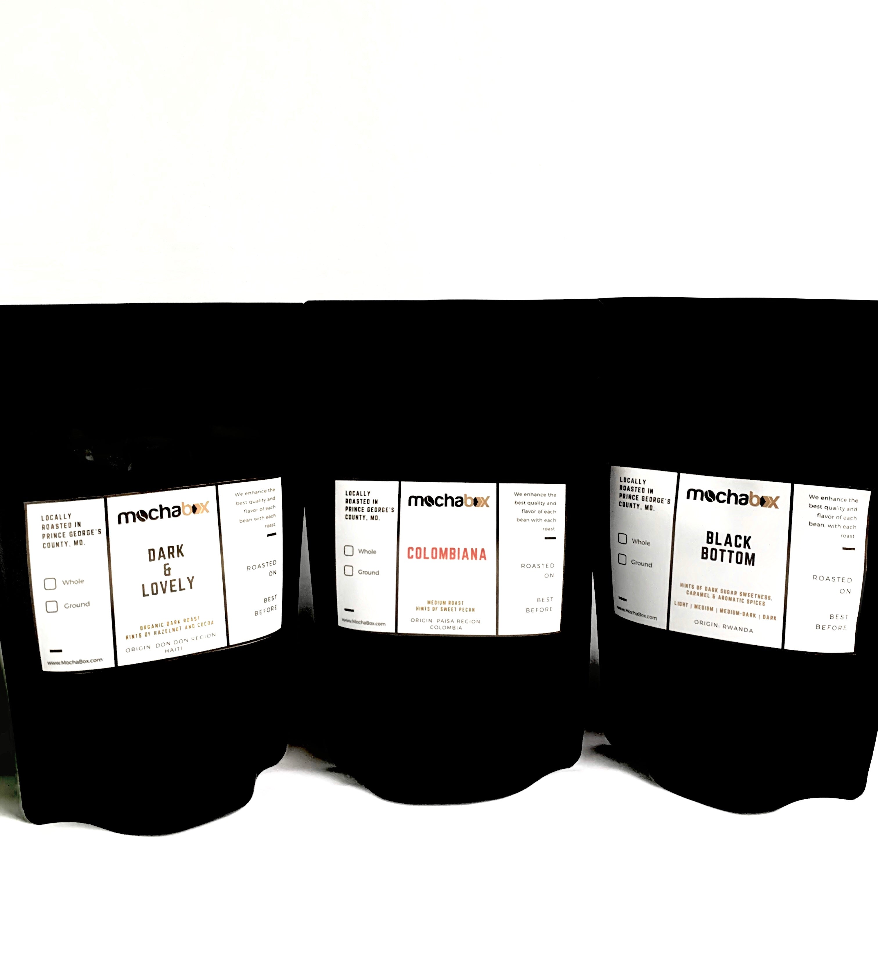 A Family of Great Coffees! Take a “sip” around the world and try three single origin coffees from Colombia, Haiti, and Rwanda. Each coffee comes in a 6 oz. bag. Great Coffee Gift for family, friends, and co-workers!